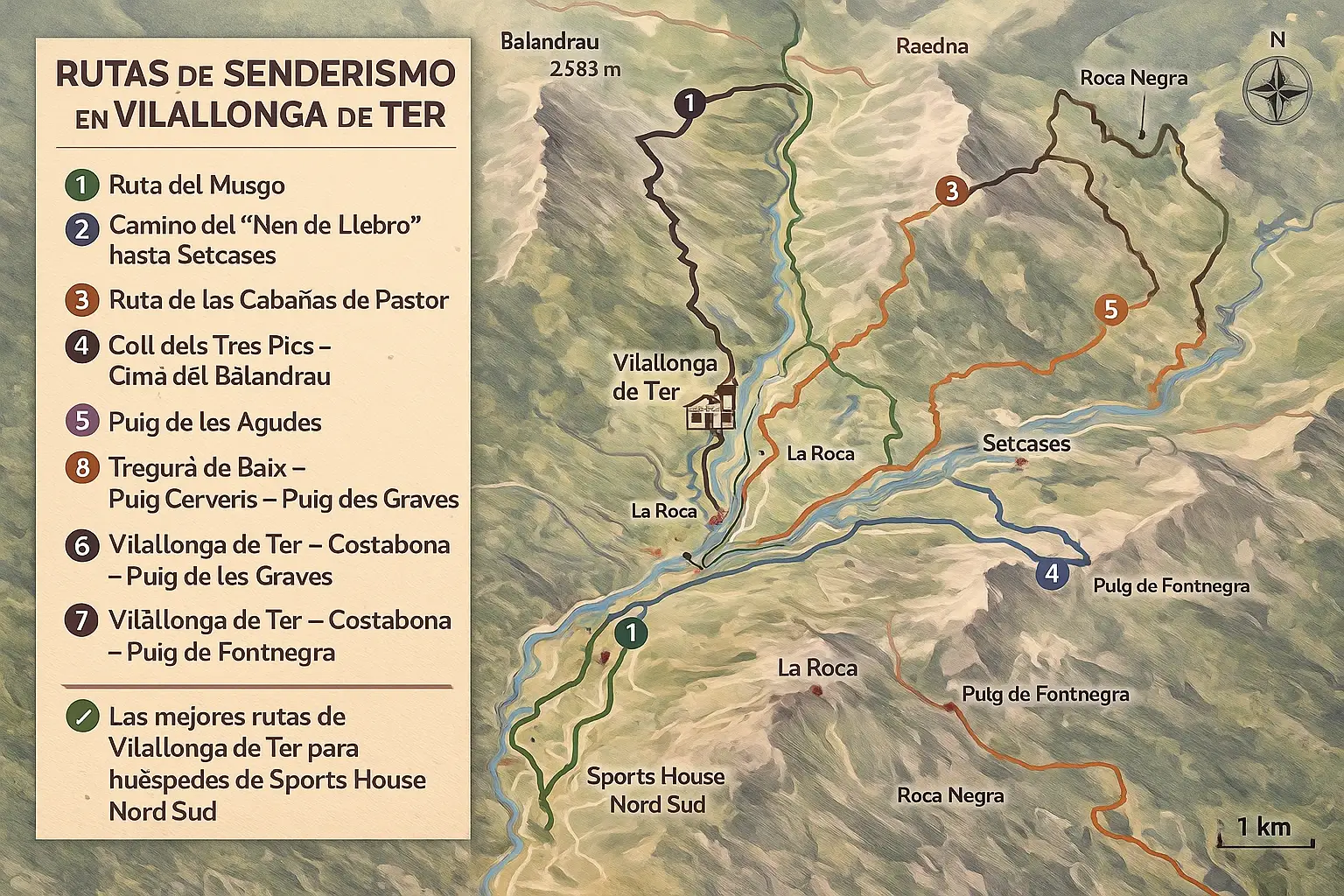 El encantador pueblo de Vilallonga de Ter y sus alrededores son un sueño para los apasionados de la montaña. Cimas como Bastiments, Gra de Fajol, Balandrau, Comanegre, Costabona, Roca Colom, Pic de la Dona o Bacivers te sorprenderán con panorámicas que quitan el aliento.